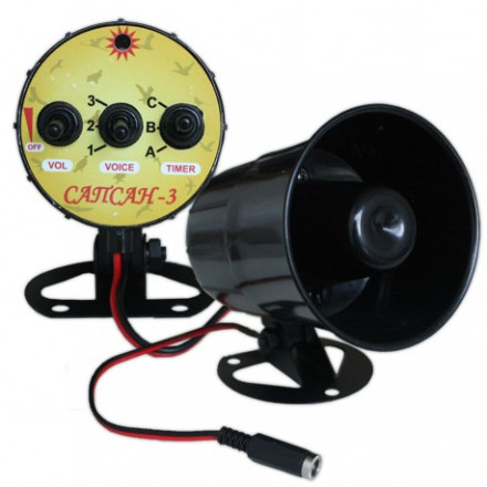 «Сапсан-3» - биоакустический отпугиватель птиц для дач, парковок, приусадебных участков, садов и полей на расстоянии 0,5 Га. Радиус воздействия достигает 5 Га. Действует против чаек, ворон, грачей, сорок, дроздов, сорок и скворцов. Универсальность прибора обусловлена наличием 3-х звуковых наборов. Такой подход дает возможность использовать наиболее эффективный вариант, подобрав индивидуально самый результативный, в зависимости от случая.